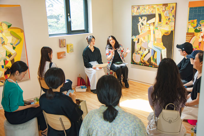 사람에 대한 깊은 애정을 작품에 담는 미켈 작가의 작품은 정제된 미의 공식을 따르지 않고, 본능에 가까운 몸짓과 호흡으로 이루어진다. 리듬감 있는 선과 따뜻한 색채, 감각적인 구성이 만들어낸 조화로운 인물들은 몰락과 성장 속에서 자기 본질을 지키고자 하는 작가의 내면이 투영된 결과이다.